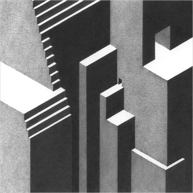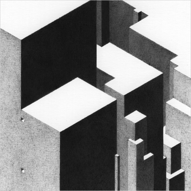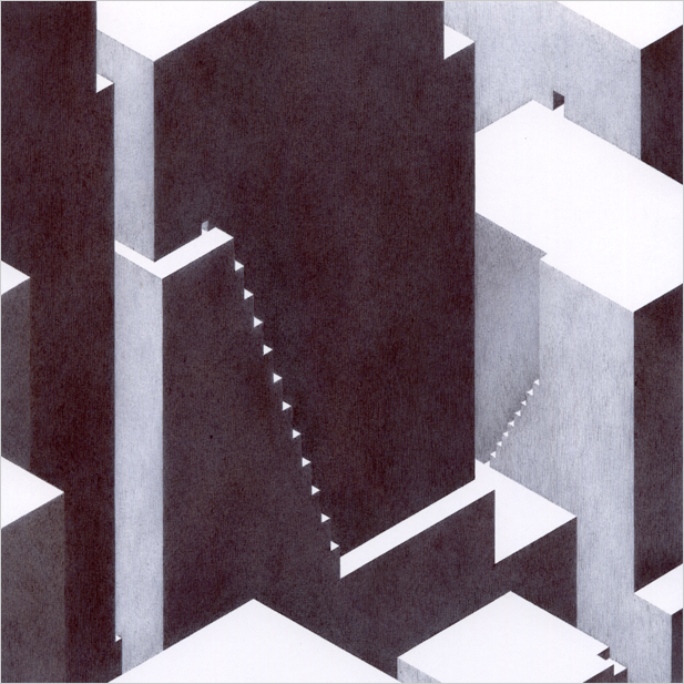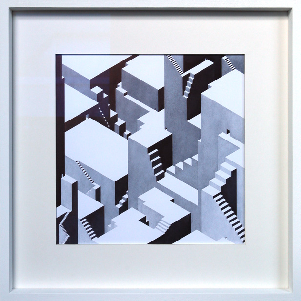 Ces dessins explorent la ville comme structure. Des éléments architecturaux reconnaissables apparaissent dans ces dessins (escaliers, portes, fenêtres, buildings...) pourtant leurs proportions et leur organisation rendent ces espaces instables, vertigineux, impossibles. Imaginaires.