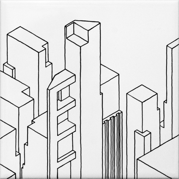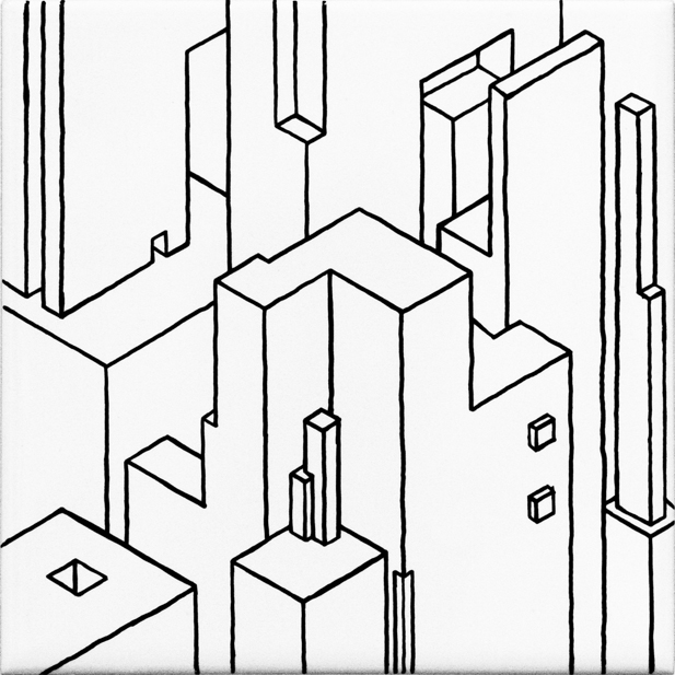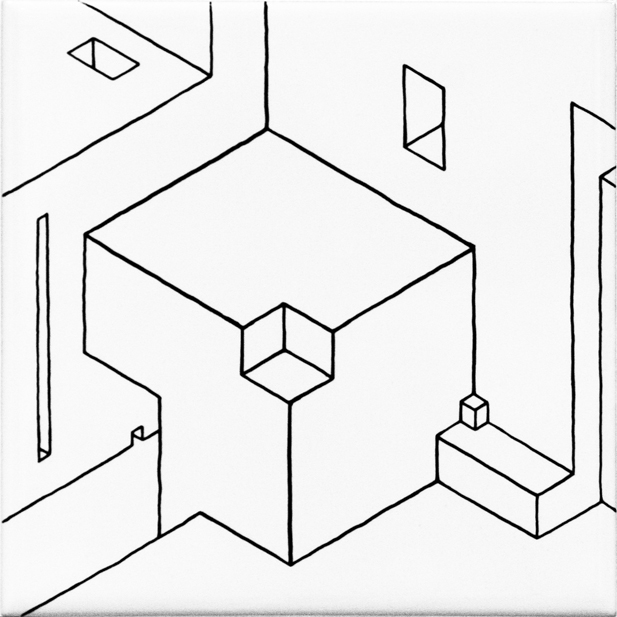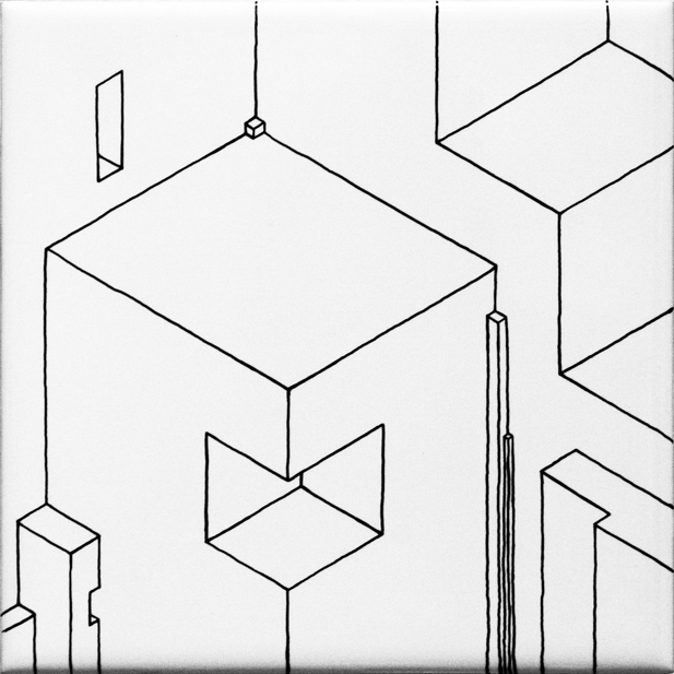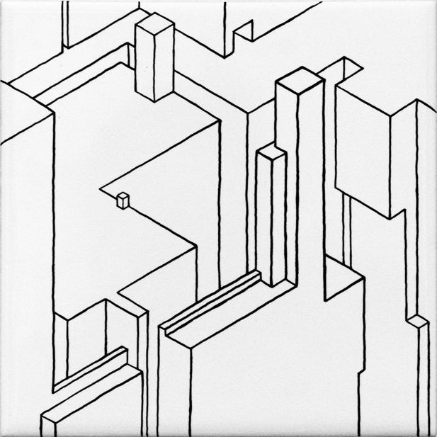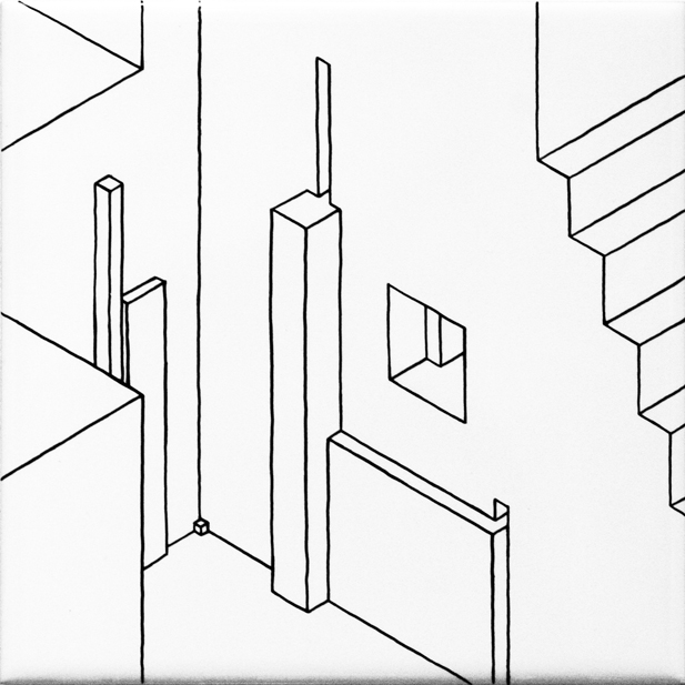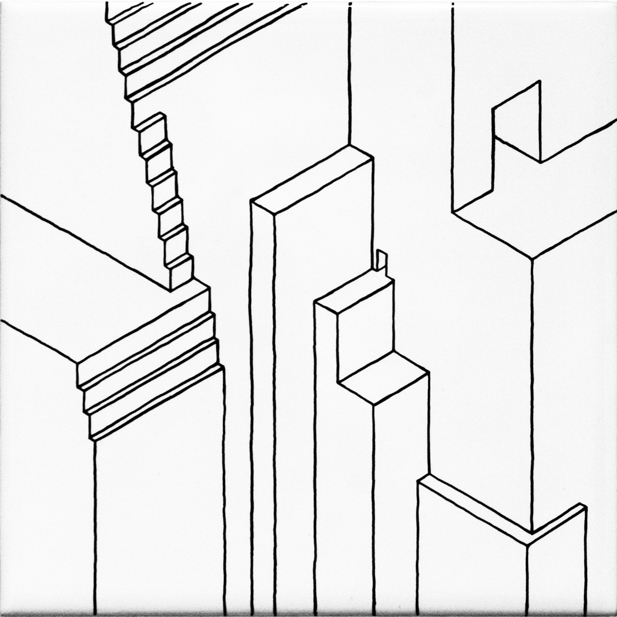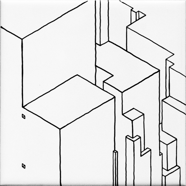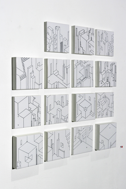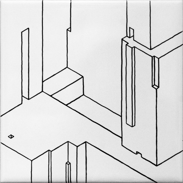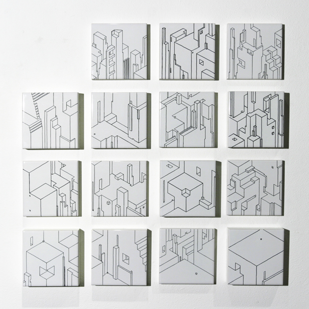 ensemble de 11 dessins | feutre sur carrelage collé sur médium d'épaisseur variable | 12x12 cm | 2009 | collection particulière